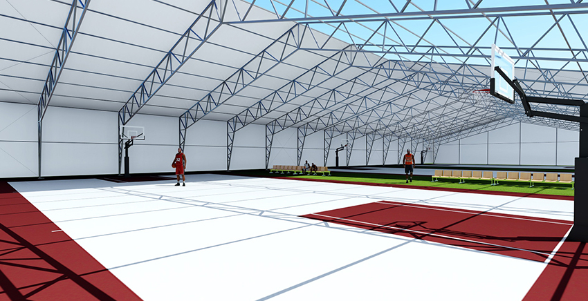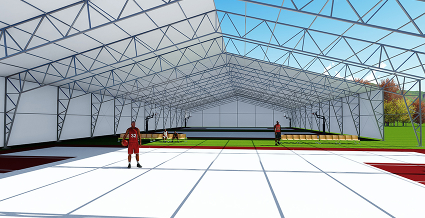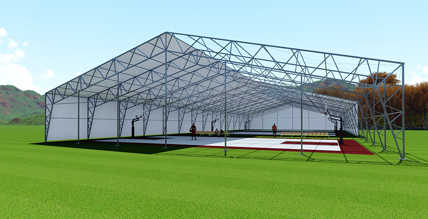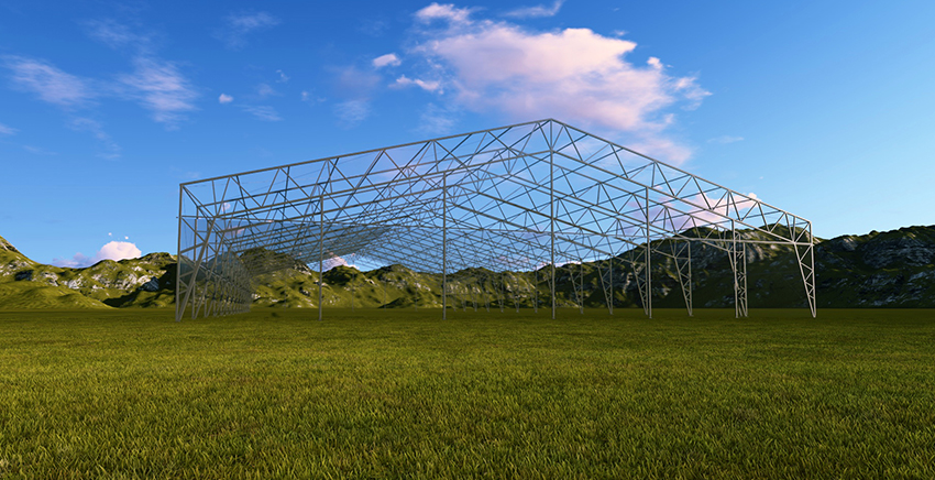 鋼框架篷房的主體結構采用高強度鋼管材料,屋面采用鋼纜斜拉條加固,屋面及墻面均有基布圍護。鋼框架篷房工所用材料及結構具備很高的完整性與安全性。