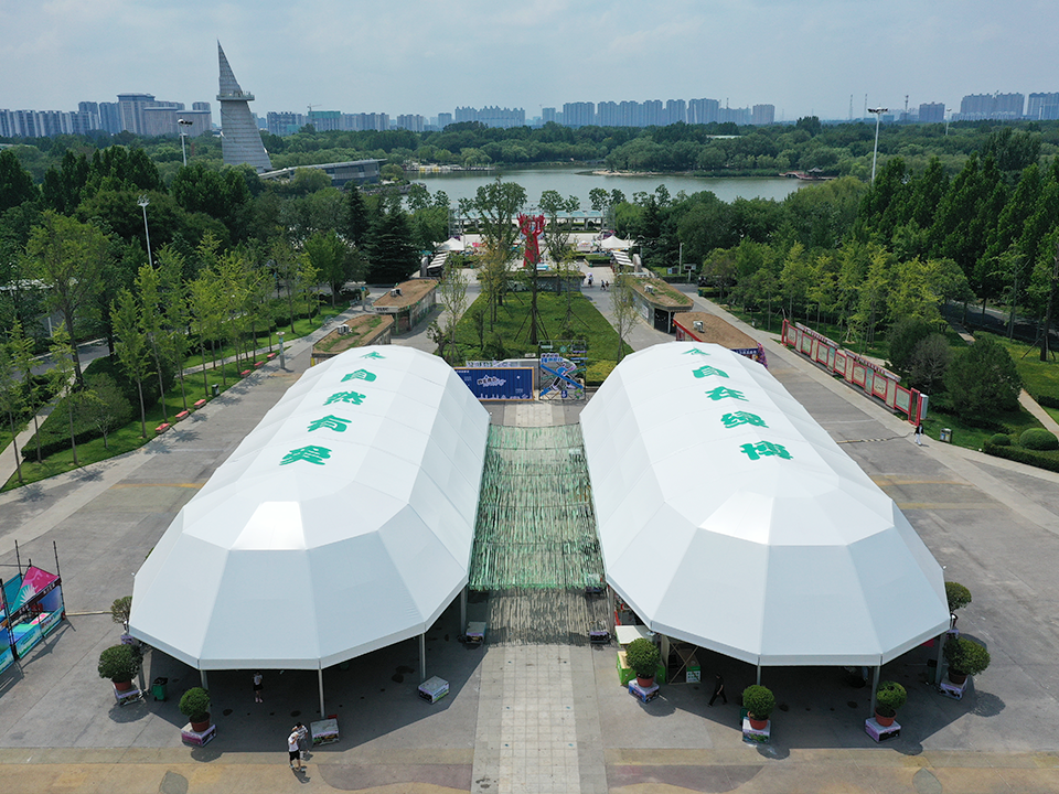2025年夏季,高山篷房作為鄭州綠博園“歡樂(lè)喜聚秀”活動(dòng)的戰(zhàn)略合作伙伴,以創(chuàng)新設(shè)計(jì)的鉆石型篷房(外白內(nèi)黑)為核心載體,為景區(qū)打造兼具美學(xué)與功能性的藝術(shù)空間,助力為期45天的夏日狂歡活動(dòng)圓滿落地。